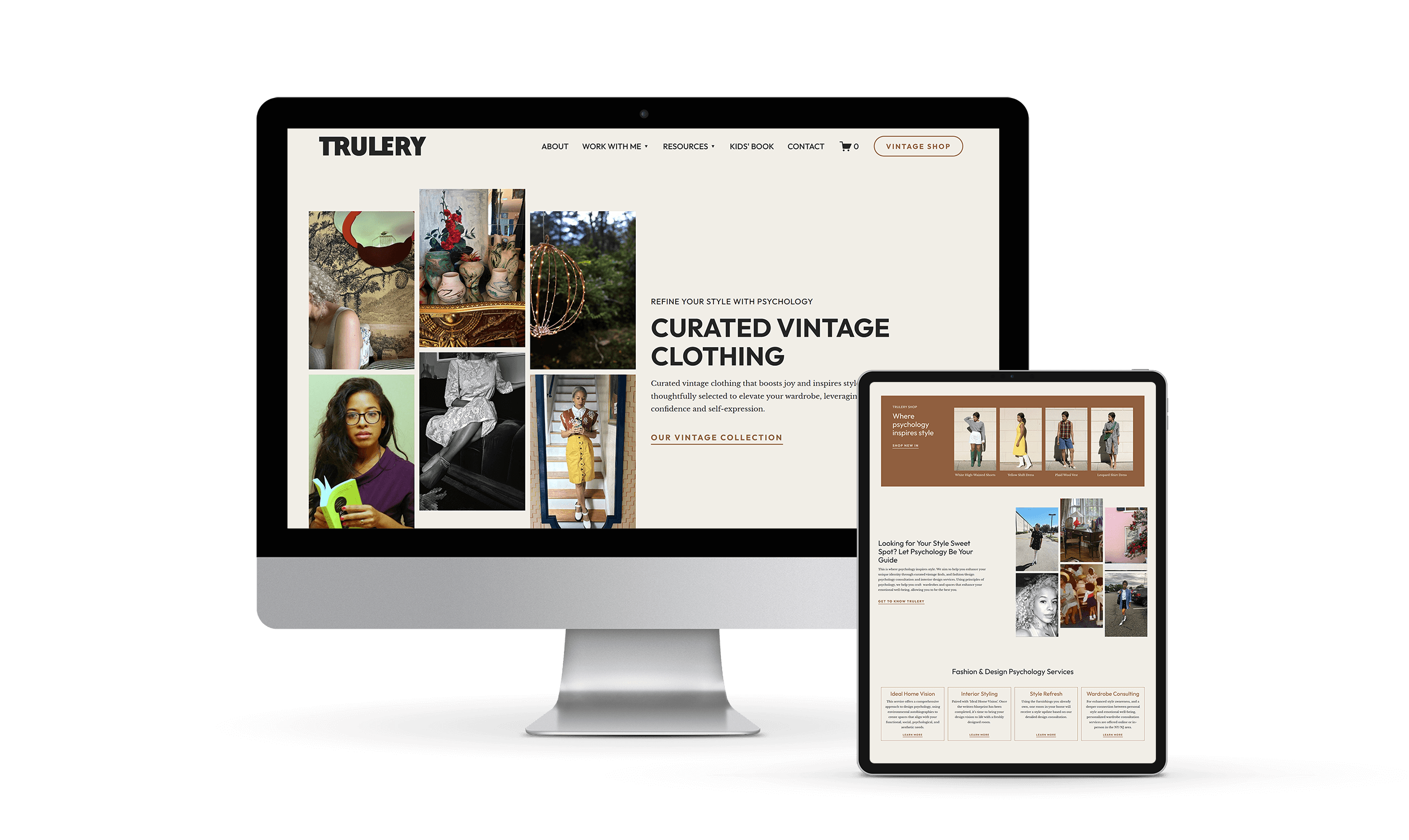 Sarah, founder of Trulery, blends fashion psychology with handpicked vintage pieces — offering both a distinctive aesthetic and educational insight into personal style. She came to me looking for a modern, editorial-style Squarespace site that reflected her evolving brand and positioned her online shop as the entry point to her broader services.